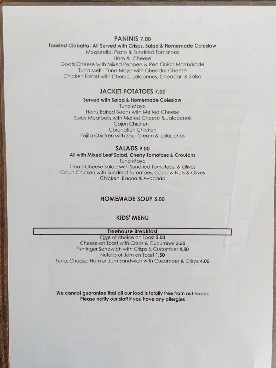 West Park Cafe Menu